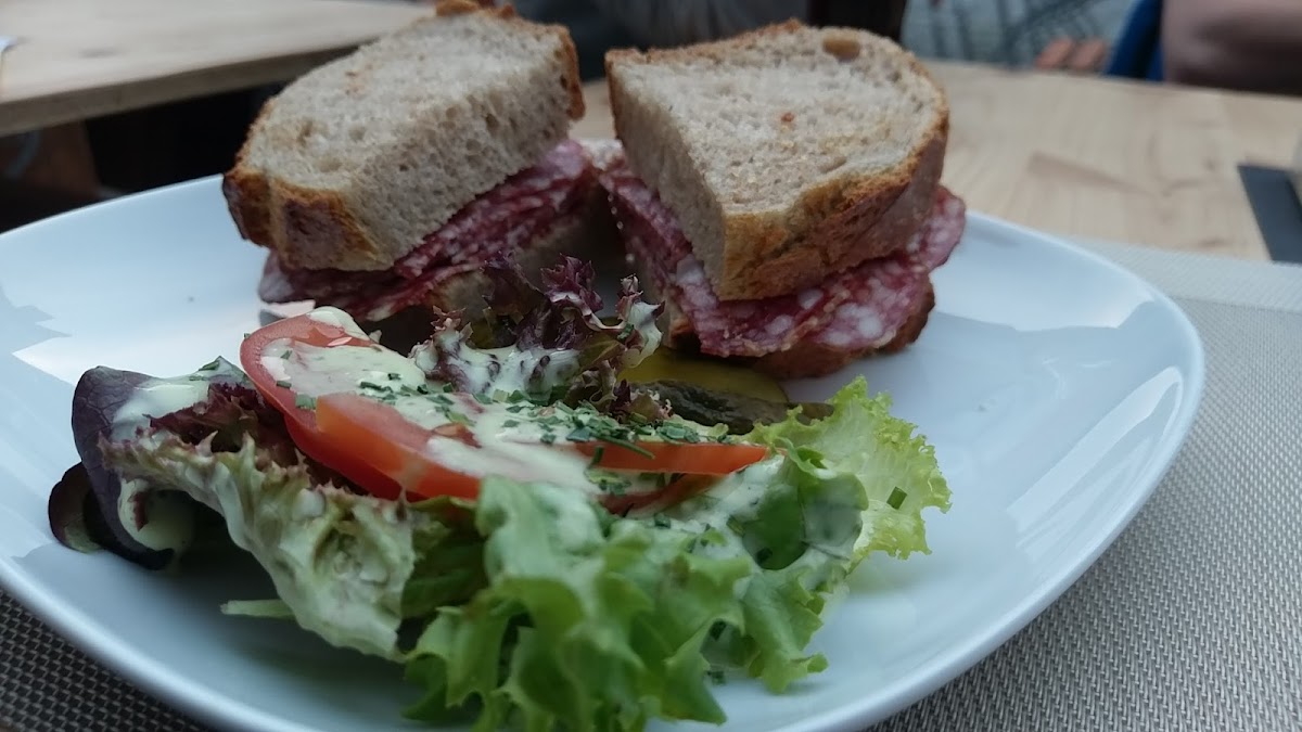 The menu focuses on hearty, well-known favorites that deliver on flavor and portion size. One of the standout choices is the Fleischkäse Mit Pommes Frites, a classic dish that arrives hot, filling, and exactly as expected. It’s the kind of meal that feels comforting and dependable, especially when paired with a glass of Weisswein. For something lighter but still full of character, the Salami Sandwich is a popular option, ideal for lunch or a relaxed midday break.