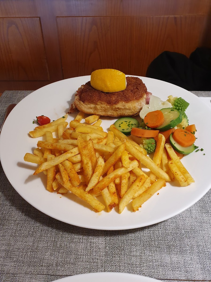 Those looking for a more traditional sit-down plate often gravitate toward the Gordon-bleu Mit Gemüse Und Pommes Frites. The balance between crispy, rich flavors and fresh vegetables works well, and it pairs naturally with a glass of Rotwein. Alcohol is available, which adds to the overall dining experience without overpowering the casual vibe of the place.